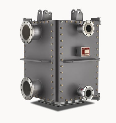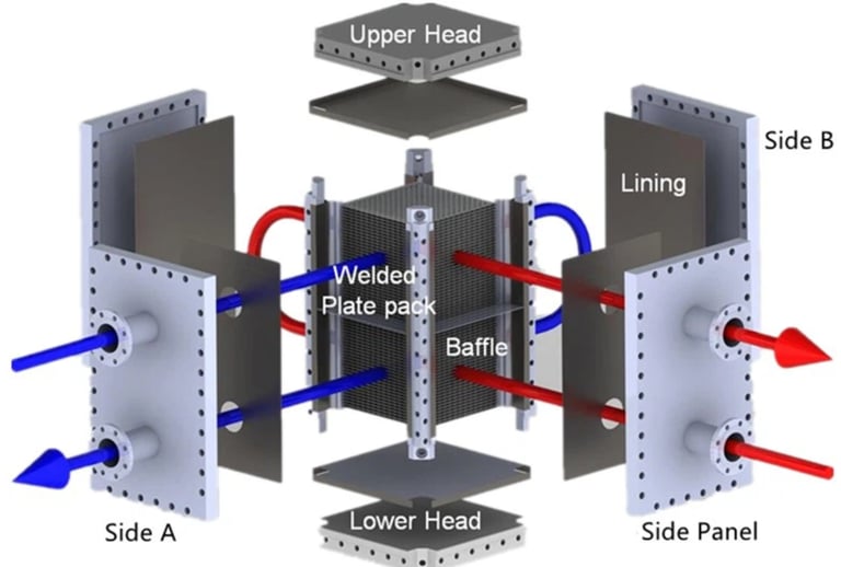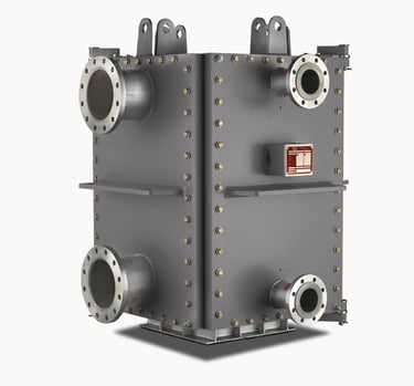 Fully- Welded Block Heat Exchanger: This fully welded, compact unit handles aggressive fluids and high temperatures without the need for gaskets. It’s perfect when you need a durable, low-maintenance option in extreme environments like petrochemicals, offshore platforms, or demanding process industries.